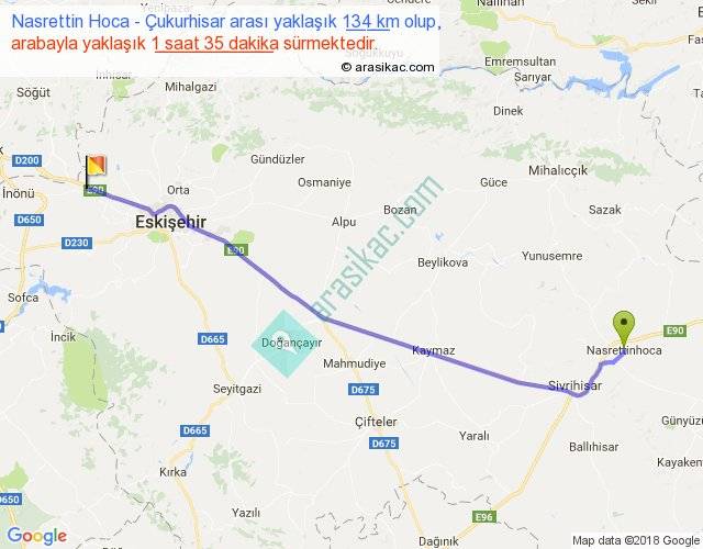 Nasrettin Hoca - Çukurhisar arası yaklaşık olarak 90 km/h ile yukarıda belirtilen sürede olup, iki yerin kuş uçuşu uzaklığı (mesafesi) 119'dir. Yolculuk otobüsle 2 saat 3 dakika sürmektedir.