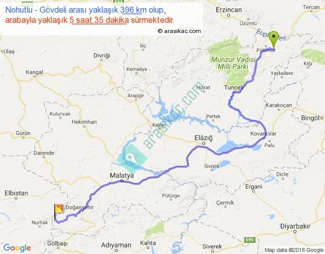 Nohutlu - Gövdeli arası yaklaşık olarak 90 km/h ile yukarıda belirtilen sürede olup, iki yerin kuş uçuşu uzaklığı (mesafesi) 259'dir. Eğer belirtilen yerler arasında uçak seferi var ise bu süre uçakla 23 dakika'ya kadar düşebilir. Yolculuk otobüsle 7 saat 15 dakika sürmektedir.