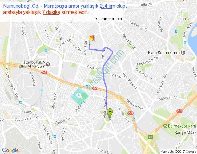 Numunebağı Cd. - Muratpaşa arası yaklaşık olarak 90 km/h ile yukarıda belirtilen sürede olup, iki yerin kuş uçuşu uzaklığı (mesafesi) 2'dir. Yolculuk otobüsle 9 dakika sürmektedir.