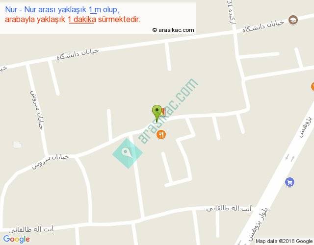 Nur - Nur arası yaklaşık olarak 90 km/h ile yukarıda belirtilen sürede olup, iki yerin kuş uçuşu uzaklığı (mesafesi) 0'dir. Yolculuk otobüsle 1 dakika sürmektedir.