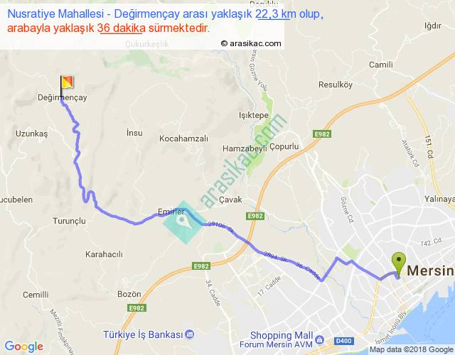 Nusratiye Mahallesi - Değirmençay arası yaklaşık olarak 90 km/h ile yukarıda belirtilen sürede olup, iki yerin kuş uçuşu uzaklığı (mesafesi) 16'dir. Yolculuk otobüsle 46 dakika sürmektedir.