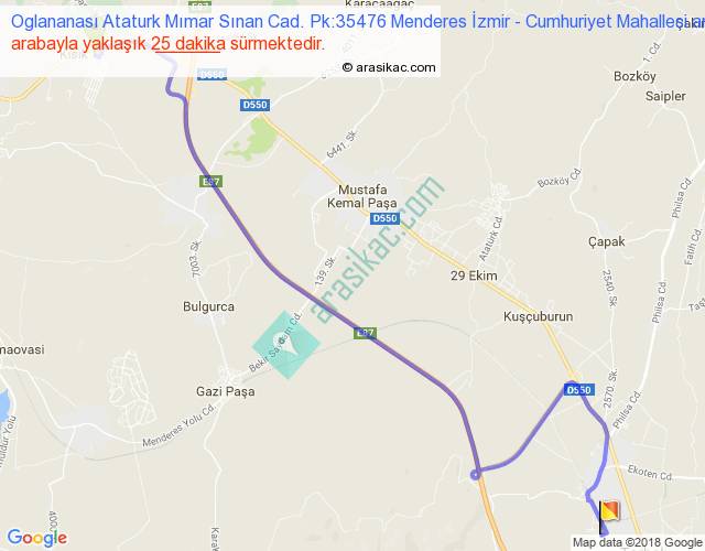 Oglananası Ataturk Mımar Sınan Cad. Pk:35476 Menderes İzmir - Cumhuriyet Mahallesi arası detaylı bilgi