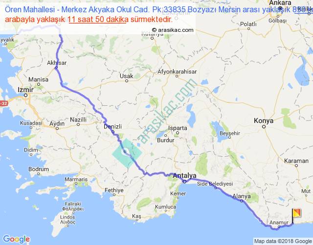 Ören Mahallesi - Merkez Akyaka Okul Cad. Pk:33835 Bozyazı Mersin arası detaylı bilgi