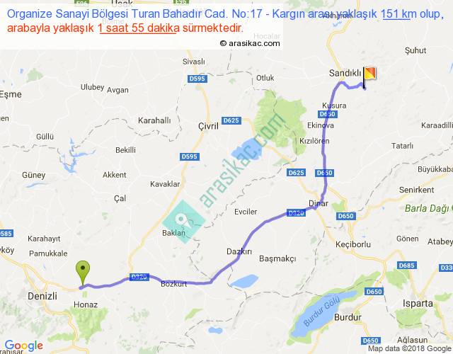Organize Sanayi Bölgesi Turan Bahadır Cad. No:17 - Kargın arası yaklaşık olarak 90 km/h ile yukarıda belirtilen sürede olup, iki yerin kuş uçuşu uzaklığı (mesafesi) 116'dir. Yolculuk otobüsle 2 saat 29 dakika sürmektedir.