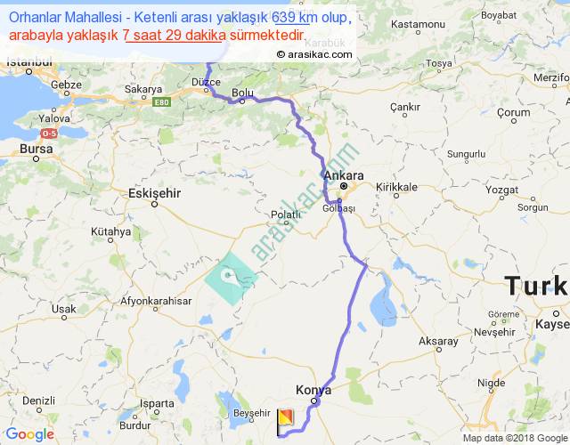 Orhanlar Mahallesi - Ketenli arası yaklaşık olarak 90 km/h ile yukarıda belirtilen sürede olup, iki yerin kuş uçuşu uzaklığı (mesafesi) 420'dir. Eğer belirtilen yerler arasında uçak seferi var ise bu süre uçakla 38 dakika'ya kadar düşebilir. Yolculuk otobüsle 9 saat 43 dakika sürmektedir.