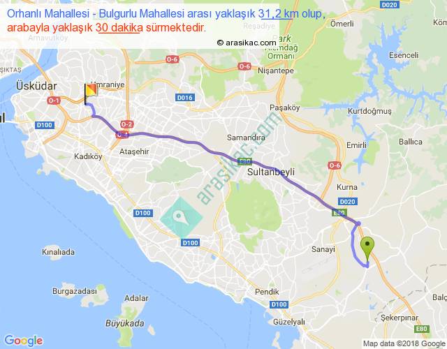Orhanlı Mahallesi - Bulgurlu Mahallesi arası yaklaşık olarak 90 km/h ile yukarıda belirtilen sürede olup, iki yerin kuş uçuşu uzaklığı (mesafesi) 27'dir. Yolculuk otobüsle 39 dakika sürmektedir.