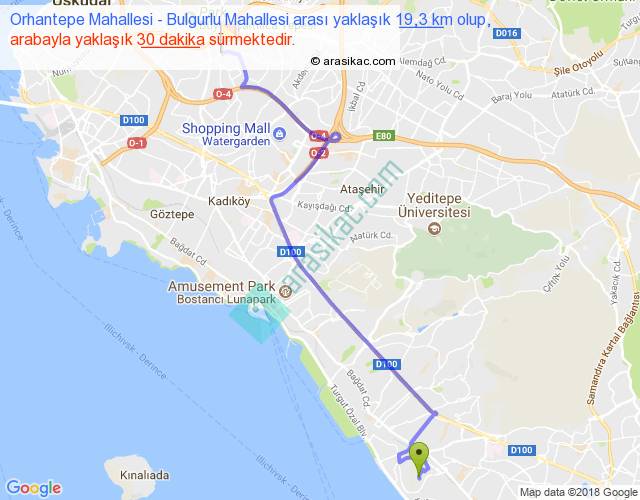 Orhantepe Mahallesi - Bulgurlu Mahallesi arası yaklaşık olarak 90 km/h ile yukarıda belirtilen sürede olup, iki yerin kuş uçuşu uzaklığı (mesafesi) 13'dir. Yolculuk otobüsle 39 dakika sürmektedir.