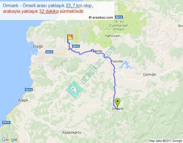 Ormanlı - Ömerli arası yaklaşık olarak 90 km/h ile yukarıda belirtilen sürede olup, iki yerin kuş uçuşu uzaklığı (mesafesi) 16'dir. Yolculuk otobüsle 41 dakika sürmektedir.