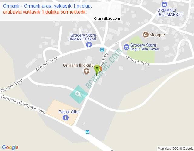Ormanlı - Ormanlı arası yaklaşık olarak 90 km/h ile yukarıda belirtilen sürede olup, iki yerin kuş uçuşu uzaklığı (mesafesi) 0'dir. Yolculuk otobüsle 1 dakika sürmektedir.