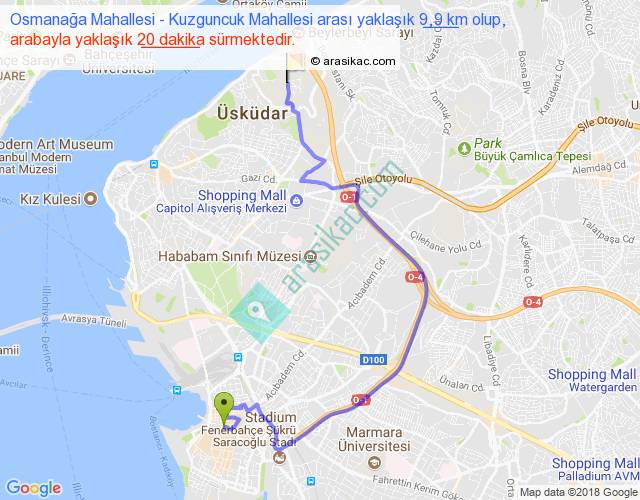 Eğer Osmanağa Mahallesi Kuzguncuk Mahallesi arası ne kadar yakar (benzin/mazot) diyorsanız, kilometrede 3 ₺ yakan bir aracınız var ise 27, km'de 4 ₺ yakan bir aracınız var ise 36, km'de 5 ₺ yakan bir aracınız var ise 45 ile bu yolculuğu tamamlayabilirsiniz.