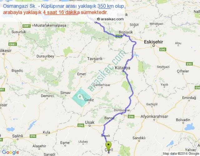 Osmangazi Sk. - Küplüpınar arası yaklaşık olarak 90 km/h ile yukarıda belirtilen sürede olup, iki yerin kuş uçuşu uzaklığı (mesafesi) 218'dir. Yolculuk otobüsle 5 saat 32 dakika sürmektedir.
