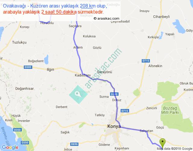 Ovakavağı - Kuzören arası yaklaşık olarak 90 km/h ile yukarıda belirtilen sürede olup, iki yerin kuş uçuşu uzaklığı (mesafesi) 149'dir. Yolculuk otobüsle 3 saat 41 dakika sürmektedir.