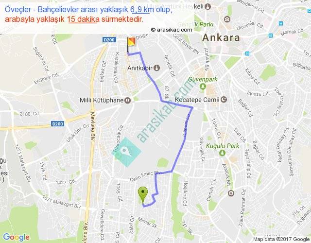 Eğer Öveçler Bahçelievler arası ne kadar yakar (benzin/mazot) diyorsanız, kilometrede 3 ₺ yakan bir aracınız var ise 18, km'de 4 ₺ yakan bir aracınız var ise 24, km'de 5 ₺ yakan bir aracınız var ise 30 ile bu yolculuğu tamamlayabilirsiniz.