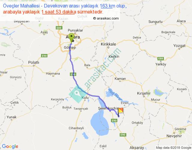 Öveçler Mahallesi - Devekovan arası yaklaşık olarak 90 km/h ile yukarıda belirtilen sürede olup, iki yerin kuş uçuşu uzaklığı (mesafesi) 136'dir. Yolculuk otobüsle 2 saat 26 dakika sürmektedir.