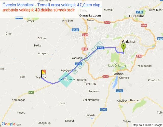 Öveçler Mahallesi - Temelli arası yaklaşık olarak 90 km/h ile yukarıda belirtilen sürede olup, iki yerin kuş uçuşu uzaklığı (mesafesi) 39'dir. Yolculuk otobüsle 52 dakika sürmektedir.