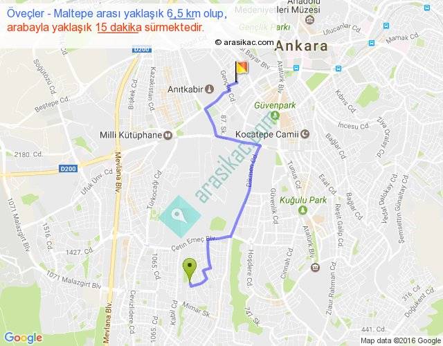 Öveçler - Maltepe arası yaklaşık olarak 90 km/h ile yukarıda belirtilen sürede olup, iki yerin kuş uçuşu uzaklığı (mesafesi) 4'dir. Yolculuk otobüsle 19 dakika sürmektedir.