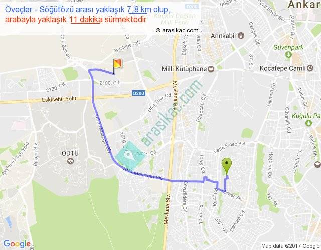 Eğer Öveçler Söğütözü arası ne kadar yakar (benzin/mazot) diyorsanız, kilometrede 3 ₺ yakan bir aracınız var ise 21, km'de 4 ₺ yakan bir aracınız var ise 28, km'de 5 ₺ yakan bir aracınız var ise 35 ile bu yolculuğu tamamlayabilirsiniz.
