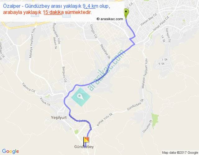 Özalper - Gündüzbey arası yaklaşık olarak 90 km/h ile yukarıda belirtilen sürede olup, iki yerin kuş uçuşu uzaklığı (mesafesi) 6'dir. Yolculuk otobüsle 19 dakika sürmektedir.
