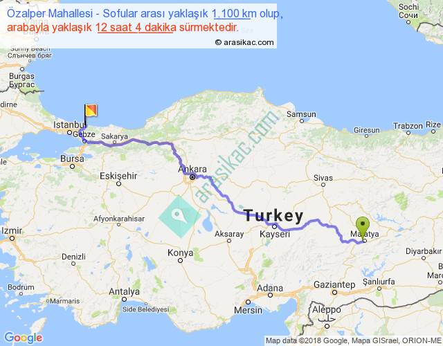 Özalper Mahallesi - Sofular arası yaklaşık olarak 90 km/h ile yukarıda belirtilen sürede olup, iki yerin kuş uçuşu uzaklığı (mesafesi) 809'dir. Eğer belirtilen yerler arasında uçak seferi var ise bu süre uçakla 1 saat 14 dakika'ya kadar düşebilir. Yolculuk otobüsle 15 saat 41 dakika sürmektedir.