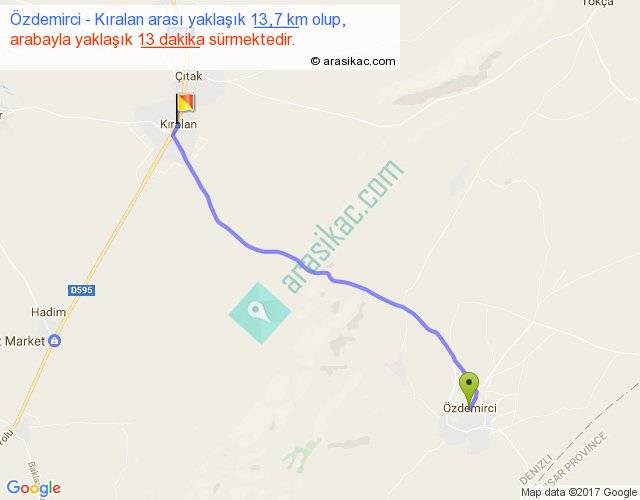 Özdemirci - Kıralan arası yaklaşık olarak 90 km/h ile yukarıda belirtilen sürede olup, iki yerin kuş uçuşu uzaklığı (mesafesi) 12'dir. Yolculuk otobüsle 16 dakika sürmektedir.