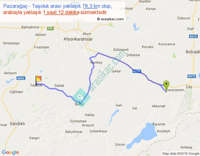 Pazarağaç - Taşoluk arası yaklaşık olarak 90 km/h ile yukarıda belirtilen sürede olup, iki yerin kuş uçuşu uzaklığı (mesafesi) 49'dir. Yolculuk otobüsle 1 saat 33 dakika sürmektedir.