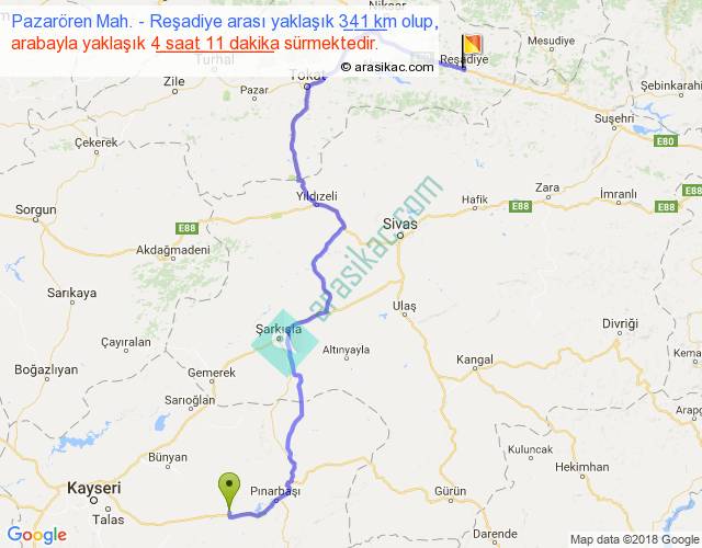Eğer Pazarören Mah. Reşadiye arası ne kadar yakar (benzin/mazot) diyorsanız, kilometrede 3 ₺ yakan bir aracınız var ise 1023, km'de 4 ₺ yakan bir aracınız var ise 1364, km'de 5 ₺ yakan bir aracınız var ise 1705 ile bu yolculuğu tamamlayabilirsiniz.