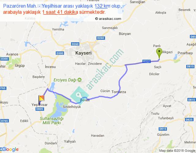 Pazarören Mah. - Yeşilhisar arası detaylı bilgi