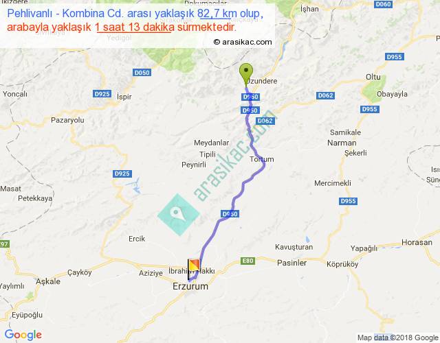 Pehlivanlı - Kombina Cd. arası yaklaşık olarak 90 km/h ile yukarıda belirtilen sürede olup, iki yerin kuş uçuşu uzaklığı (mesafesi) 68'dir. Yolculuk otobüsle 1 saat 34 dakika sürmektedir.