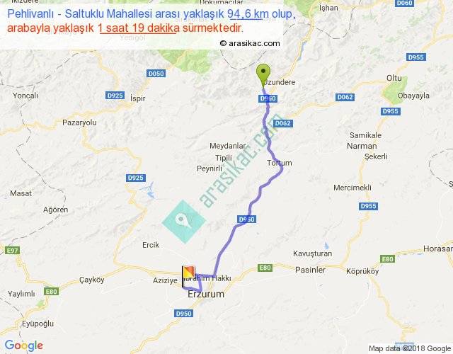 Pehlivanlı - Saltuklu Mahallesi arası yaklaşık olarak 90 km/h ile yukarıda belirtilen sürede olup, iki yerin kuş uçuşu uzaklığı (mesafesi) 70'dir. Yolculuk otobüsle 1 saat 42 dakika sürmektedir.
