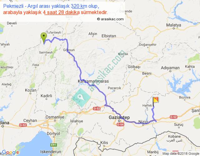 Pekmezli - Argıl arası yaklaşık olarak 90 km/h ile yukarıda belirtilen sürede olup, iki yerin kuş uçuşu uzaklığı (mesafesi) 194'dir. Yolculuk otobüsle 5 saat 48 dakika sürmektedir.