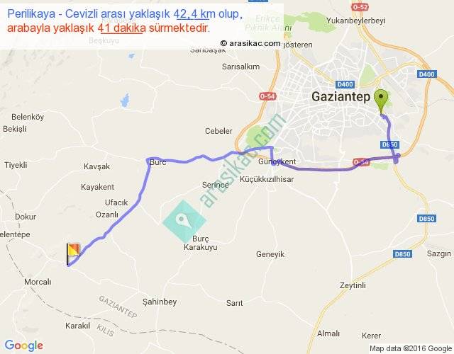 Perilikaya - Cevizli arası yaklaşık olarak 90 km/h ile yukarıda belirtilen sürede olup, iki yerin kuş uçuşu uzaklığı (mesafesi) 30'dir. Yolculuk otobüsle 53 dakika sürmektedir.