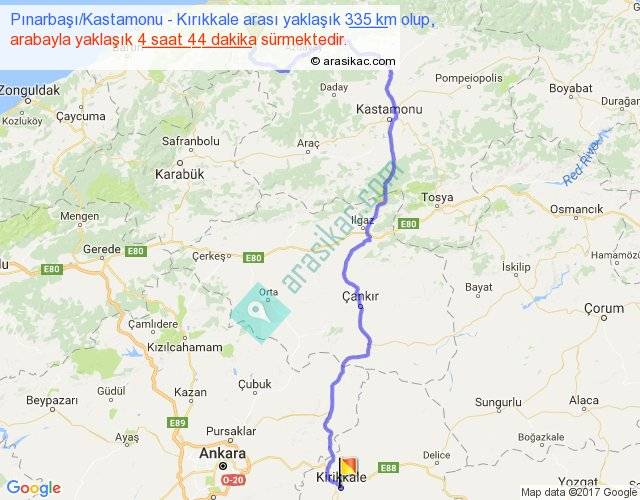 Eğer Pınarbaşı Kastamonu Kırıkkale arası ne kadar yakar (benzin/mazot) diyorsanız, kilometrede 3 ₺ yakan bir aracınız var ise 1005, km'de 4 ₺ yakan bir aracınız var ise 1340, km'de 5 ₺ yakan bir aracınız var ise 1675 ile bu yolculuğu tamamlayabilirsiniz.
