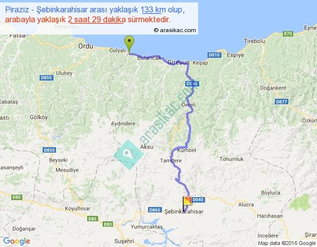 Eğer Piraziz Şebinkarahisar arası ne kadar yakar (benzin/mazot) diyorsanız, kilometrede 3 ₺ yakan bir aracınız var ise 399, km'de 4 ₺ yakan bir aracınız var ise 532, km'de 5 ₺ yakan bir aracınız var ise 665 ile bu yolculuğu tamamlayabilirsiniz.