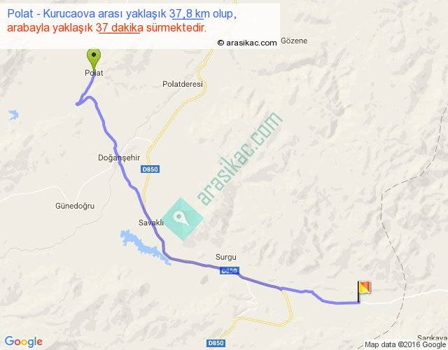 Polat - Kurucaova arası yaklaşık olarak 90 km/h ile yukarıda belirtilen sürede olup, iki yerin kuş uçuşu uzaklığı (mesafesi) 30'dir. Yolculuk otobüsle 48 dakika sürmektedir.