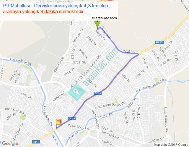 Eğer Ptt Mahallesi Dervişler arası ne kadar yakar (benzin/mazot) diyorsanız, kilometrede 3 ₺ yakan bir aracınız var ise 12, km'de 4 ₺ yakan bir aracınız var ise 16, km'de 5 ₺ yakan bir aracınız var ise 20 ile bu yolculuğu tamamlayabilirsiniz.