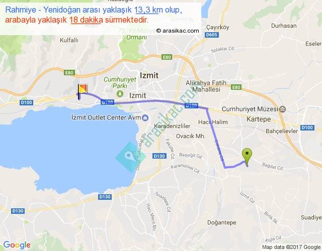 Eğer Rahmiye Yenidoğan arası ne kadar yakar (benzin/mazot) diyorsanız, kilometrede 3 ₺ yakan bir aracınız var ise 39, km'de 4 ₺ yakan bir aracınız var ise 52, km'de 5 ₺ yakan bir aracınız var ise 65 ile bu yolculuğu tamamlayabilirsiniz.
