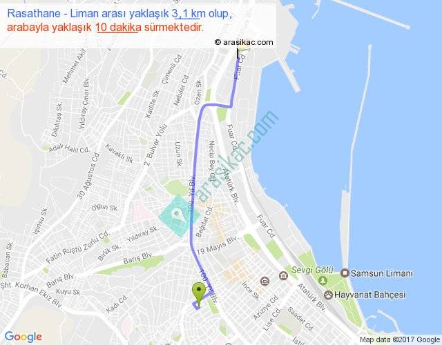 Rasathane - Liman arası yaklaşık olarak 90 km/h ile yukarıda belirtilen sürede olup, iki yerin kuş uçuşu uzaklığı (mesafesi) 3'dir. Yolculuk otobüsle 13 dakika sürmektedir.