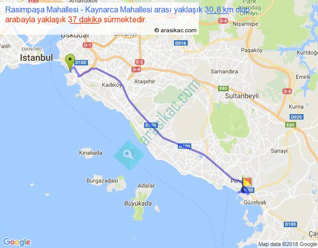 Rasimpaşa Mahallesi - Kaynarca Mahallesi arası yaklaşık olarak 90 km/h ile yukarıda belirtilen sürede olup, iki yerin kuş uçuşu uzaklığı (mesafesi) 24'dir. Yolculuk otobüsle 48 dakika sürmektedir.