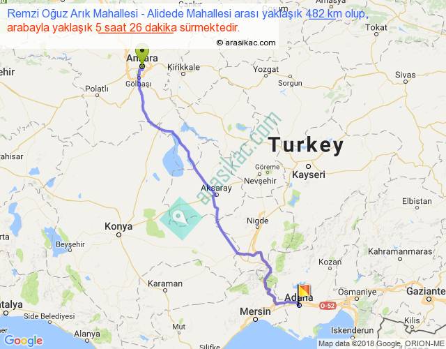 Remzi Oğuz Arık Mahallesi - Alidede Mahallesi arası yaklaşık olarak 90 km/h ile yukarıda belirtilen sürede olup, iki yerin kuş uçuşu uzaklığı (mesafesi) 387'dir. Eğer belirtilen yerler arasında uçak seferi var ise bu süre uçakla 35 dakika'ya kadar düşebilir. Yolculuk otobüsle 7 saat 3 dakika sürmektedir.