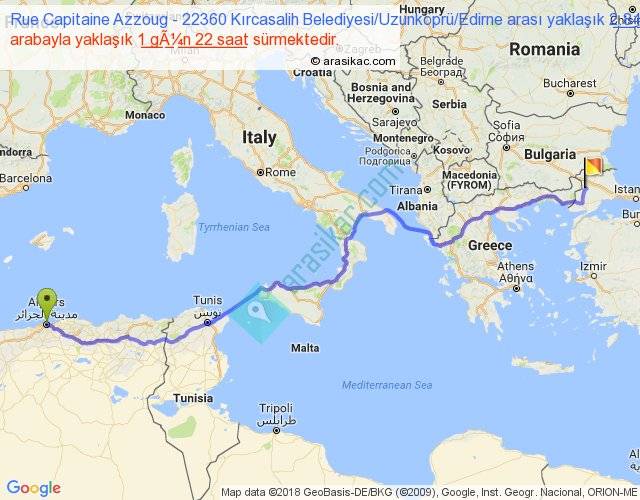 Rue Capitaine Azzoug - 22360 Kırcasalih Belediyesi Uzunköprü Edirne arası detaylı bilgi