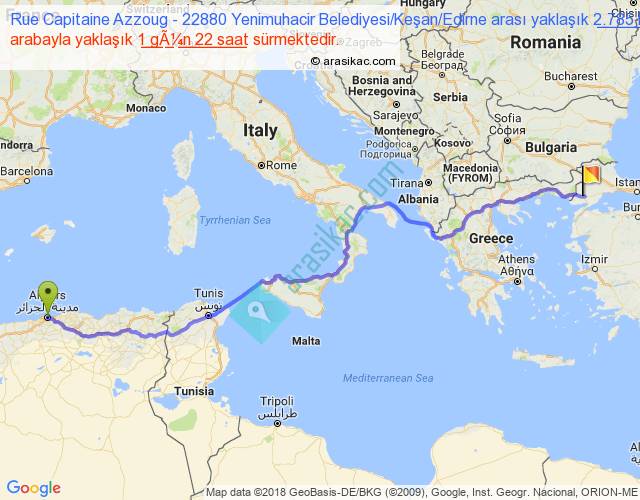 Rue Capitaine Azzoug - 22880 Yenimuhacir Belediyesi Keşan Edirne arası detaylı bilgi