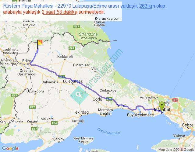 Eğer Rüstem Paşa Mahallesi 22970 Lalapaşa Edirne arası ne kadar yakar (benzin/mazot) diyorsanız, kilometrede 3 ₺ yakan bir aracınız var ise 789, km'de 4 ₺ yakan bir aracınız var ise 1052, km'de 5 ₺ yakan bir aracınız var ise 1315 ile bu yolculuğu tamamlayabilirsiniz.