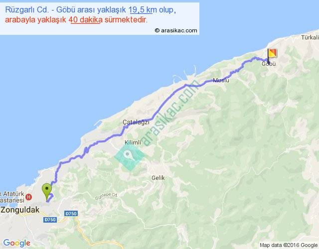 Rüzgarlı Cd. - Göbü arası yaklaşık olarak 90 km/h ile yukarıda belirtilen sürede olup, iki yerin kuş uçuşu uzaklığı (mesafesi) 15'dir. Yolculuk otobüsle 52 dakika sürmektedir.