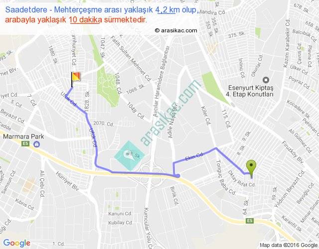 Eğer Saadetdere Mehterçeşme arası ne kadar yakar (benzin/mazot) diyorsanız, kilometrede 3 ₺ yakan bir aracınız var ise 12, km'de 4 ₺ yakan bir aracınız var ise 16, km'de 5 ₺ yakan bir aracınız var ise 20 ile bu yolculuğu tamamlayabilirsiniz.