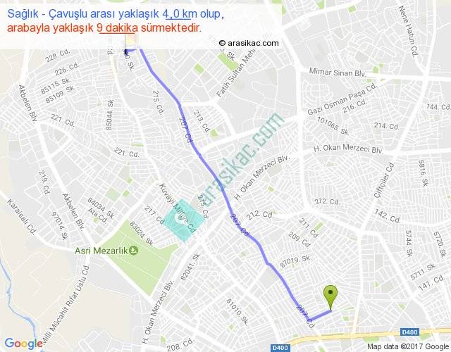 Sağlık - Çavuşlu arası yaklaşık olarak 90 km/h ile yukarıda belirtilen sürede olup, iki yerin kuş uçuşu uzaklığı (mesafesi) 4'dir. Yolculuk otobüsle 11 dakika sürmektedir.