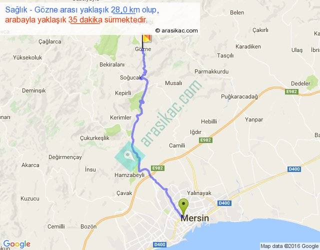 Sağlık - Gözne arası yaklaşık olarak 90 km/h ile yukarıda belirtilen sürede olup, iki yerin kuş uçuşu uzaklığı (mesafesi) 21'dir. Yolculuk otobüsle 45 dakika sürmektedir.