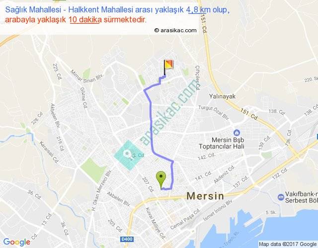 Sağlık Mahallesi - Halkkent Mahallesi arası yaklaşık olarak 90 km/h ile yukarıda belirtilen sürede olup, iki yerin kuş uçuşu uzaklığı (mesafesi) 4'dir. Yolculuk otobüsle 13 dakika sürmektedir.
