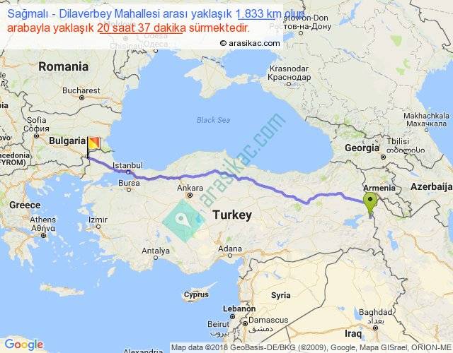 Sağmalı - Dilaverbey Mahallesi arası yaklaşık olarak 90 km/h ile yukarıda belirtilen sürede olup, iki yerin kuş uçuşu uzaklığı (mesafesi) 1503'dir. Eğer belirtilen yerler arasında uçak seferi var ise bu süre uçakla 2 saat 18 dakika'ya kadar düşebilir. Yolculuk otobüsle 1 gün 2 saat sürmektedir.
