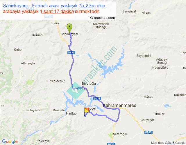 Eğer Şahinkayası Fatmalı arası ne kadar yakar (benzin/mazot) diyorsanız, kilometrede 3 ₺ yakan bir aracınız var ise 225, km'de 4 ₺ yakan bir aracınız var ise 300, km'de 5 ₺ yakan bir aracınız var ise 375 ile bu yolculuğu tamamlayabilirsiniz.