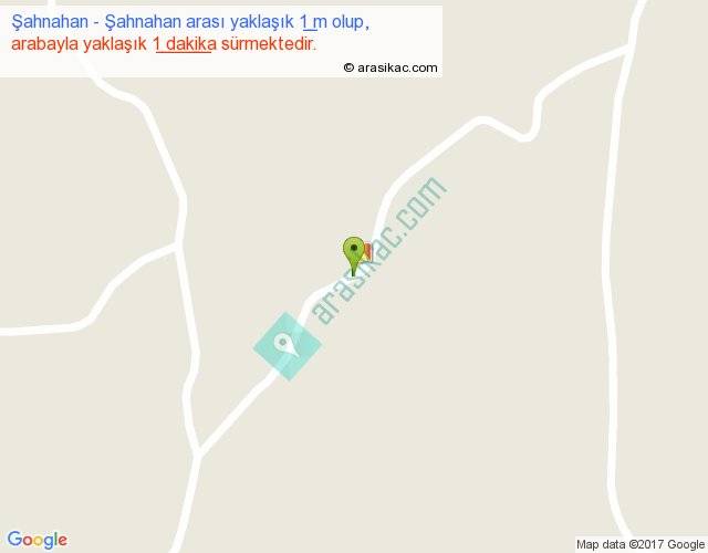 Şahnahan - Şahnahan arası yaklaşık olarak 90 km/h ile yukarıda belirtilen sürede olup, iki yerin kuş uçuşu uzaklığı (mesafesi) 0'dir. Yolculuk otobüsle 1 dakika sürmektedir.